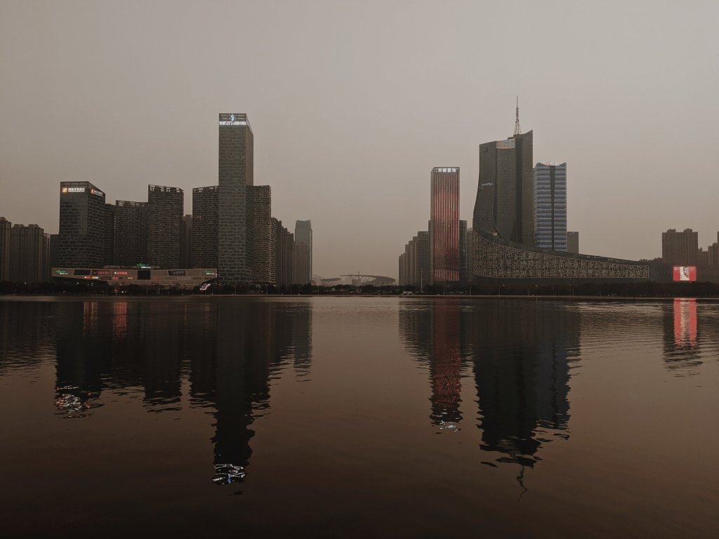 Riding round the city on the back of James’ bike, what really struck me was the size of the city and how many tall buildings there are. This is a huge place, with 4 lane roads and cycle paths along every street it is well equipped for the large population it holds. This then made me realise how few people were actually out in the city. The roads empty, the shared bikes all available and the busses (still running) once again empty. We arrived at Swan Lake where there were a few people taking in the view from the man made beach, quite pleasant and peaceful complete with walkways and a beach gym. I don’t think I’d be finding a Mr Whippy though.